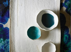 Mestiere, esperienza, anni passati a scovare e selezionare piatti, vassoi, tazze e scodelle e un’amore incondizionato per tessuti e colori hanno fatto il resto: con il suo marchio dall’ironico nome di Elephant Ceramics, nel suo studio di Brooklyn, Michele realizza piccoli capolavori da mettere in tavola, pezzi unici che prendono ispirazione dalle forme della natura e dalle textures delle tovaglie fatte a mano, quelle di una volta.